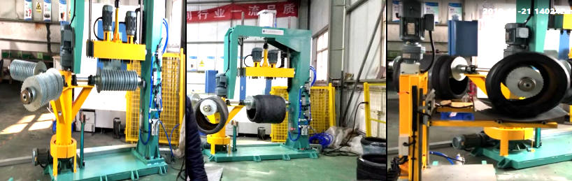刺孔机是用于进行轮胎胎坯表面扎孔除气泡的设备。。。设备采用半自动化设计方式,,可自动上下料,,,,设备配有触摸屏,,,,可以实时调控设备参数和监控,,,同时可以进行胎坯规格的录入更改。。。